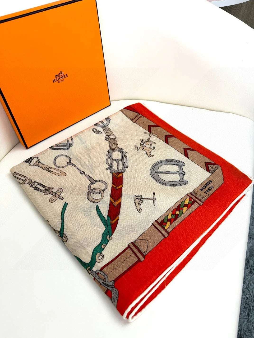HERMES 25S SCARF 135 IN CASHMERE SILK 737310