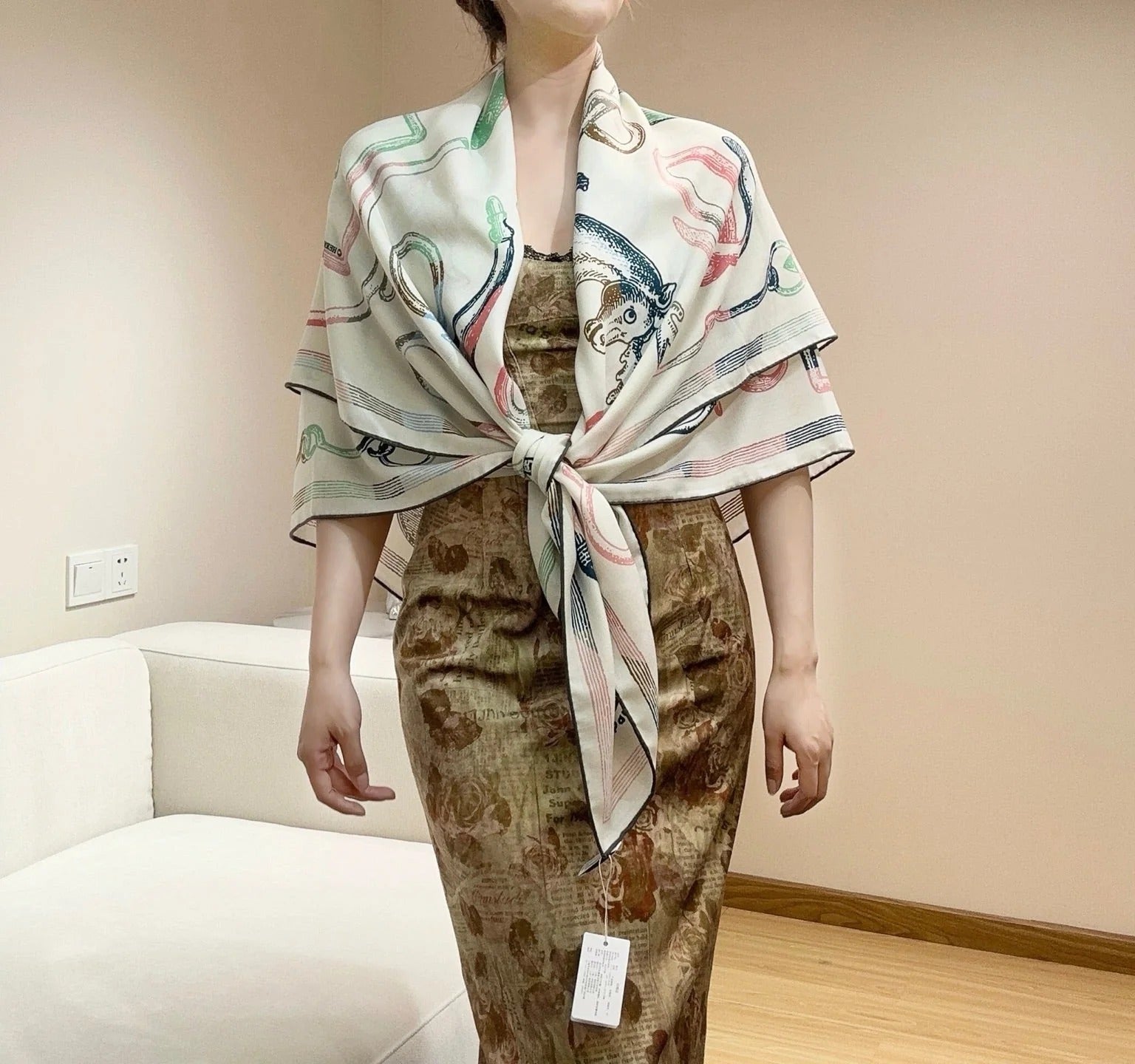 HERMES 25S SCARF 135 IN CASHMERE SILK 854593