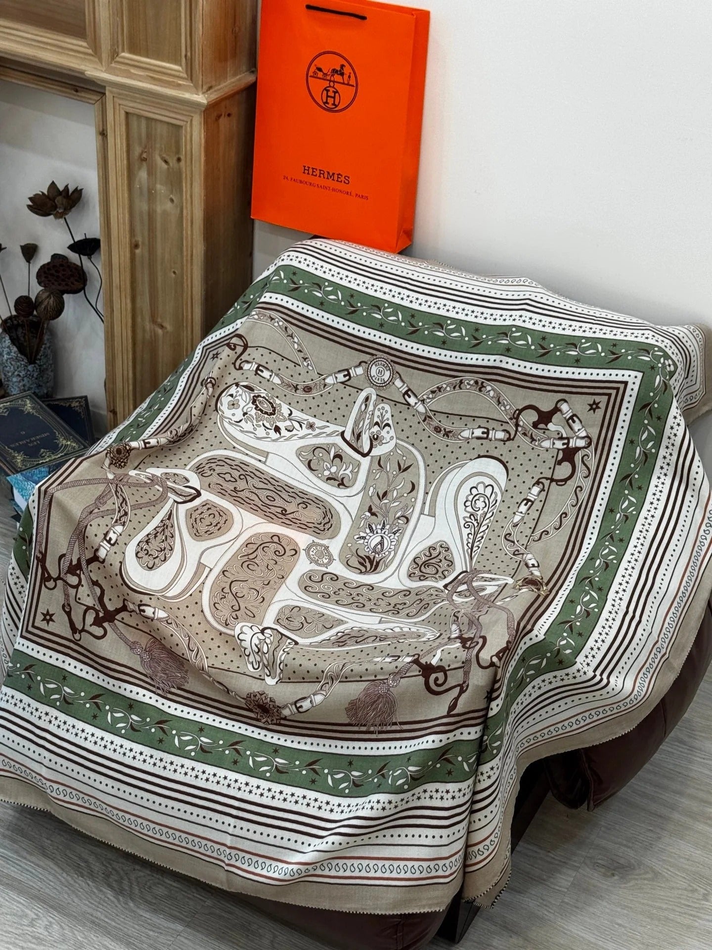 HERMES 25S SCARF 140 IN CASHMERE SILK 727318
