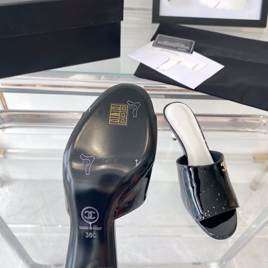 high heel 70 mule sandals black white patent calfskin