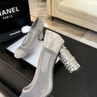 HIGH HEEL 85 MM SANDALS IN PALE GRAY SUEDE AND MESH
