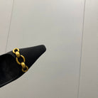HIGH PUMPS IN BLACK SILK ATTACHED GOLD CHAIN