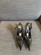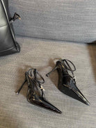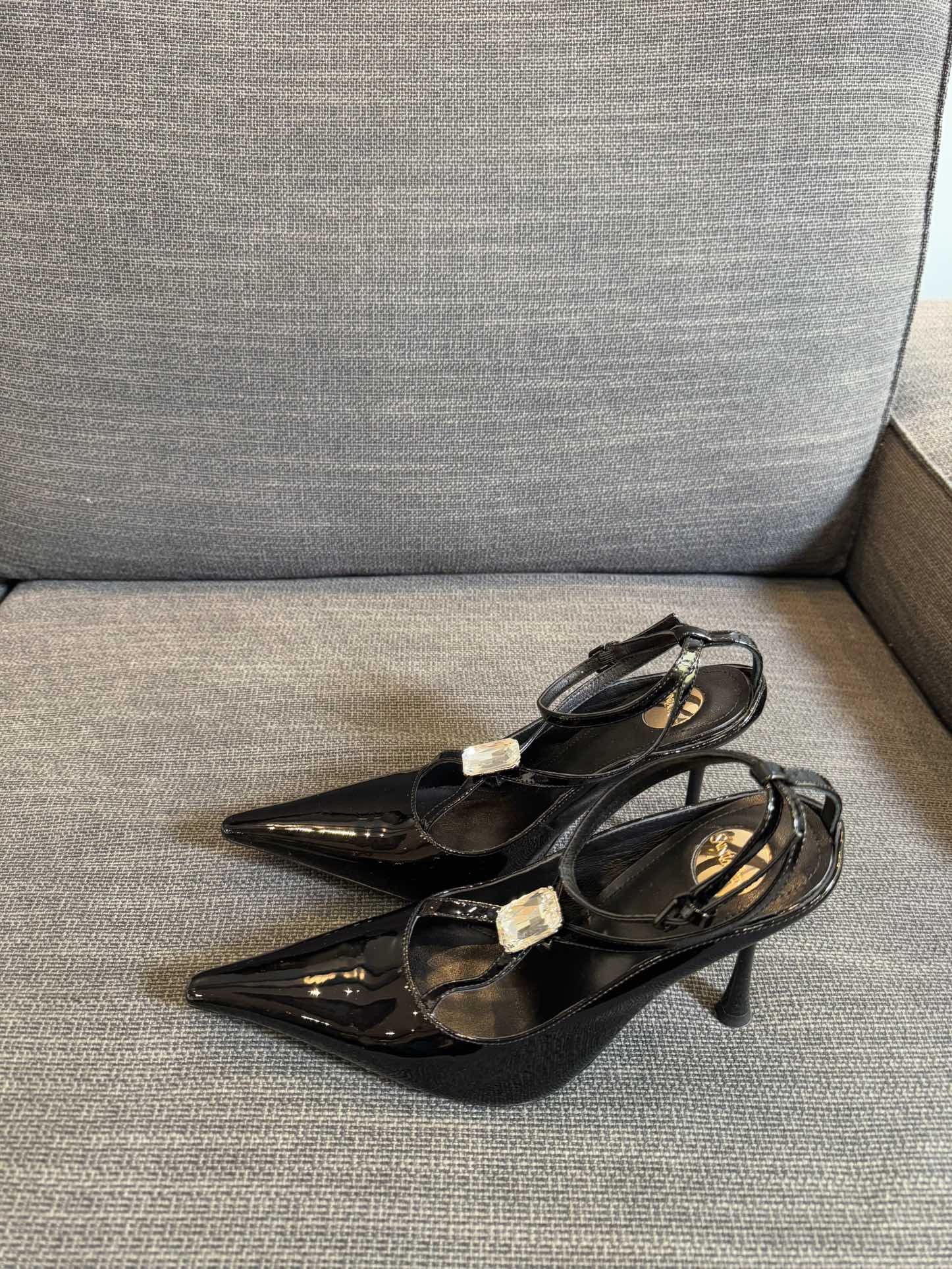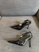 HIGH SANDAL ATTACHED GEM IN BLACK GLOSSY CALFSKIN