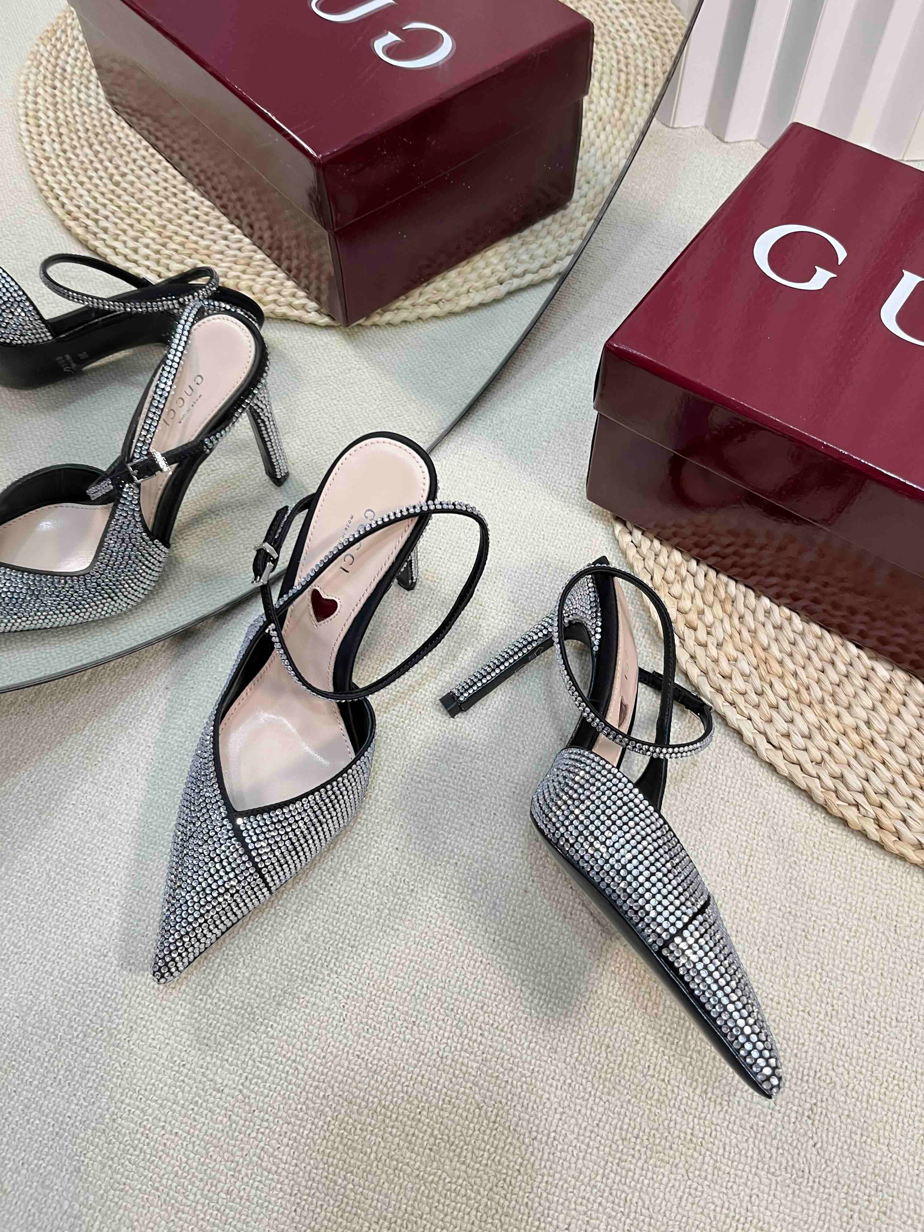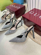HIGH SLINGBACK 10 CM IN BLACK SILK WITH FULL RHINSTONES