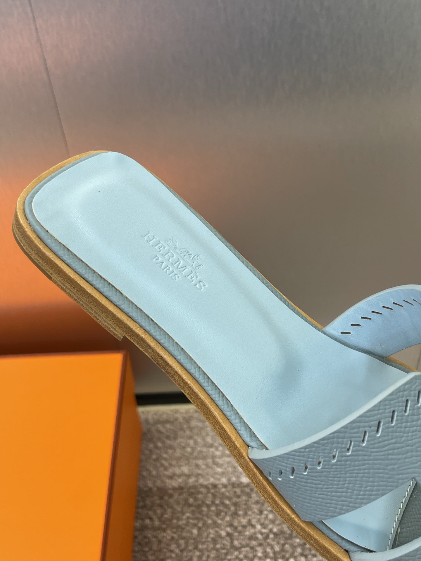 HM 25 Oran Sandal Dark Cloud Blue Perforate Epsom Leather