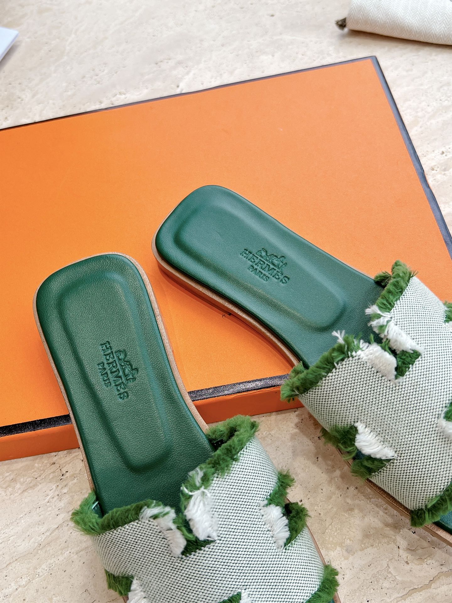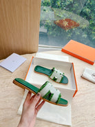 HM 25 Oran Sandal Green Calfskin White Denim