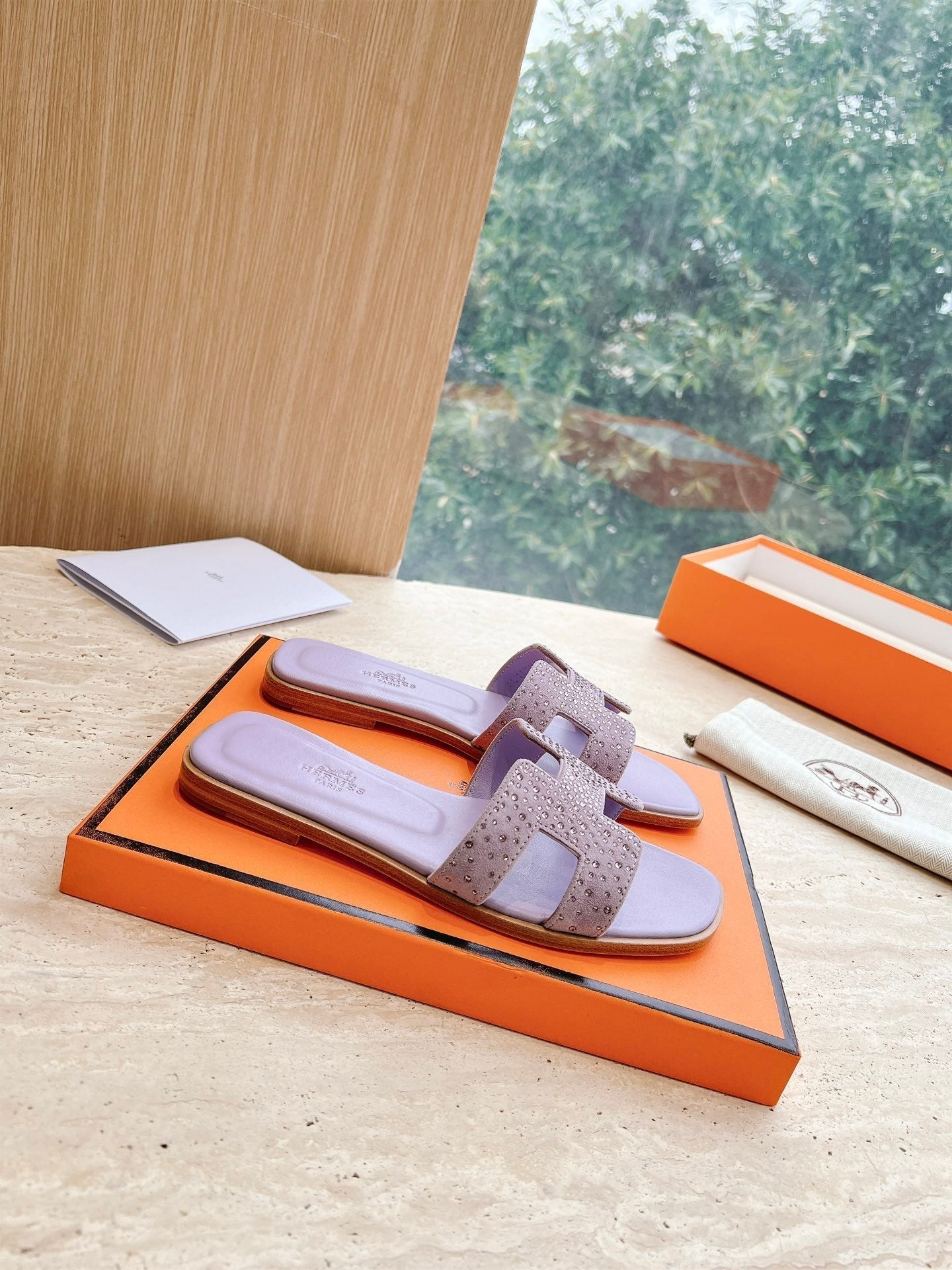 HM 25 Oran Sandal Violet Calfskin Crystal Embellished