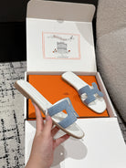HM 25 Oran Sandal White Calfskin Blue Denim