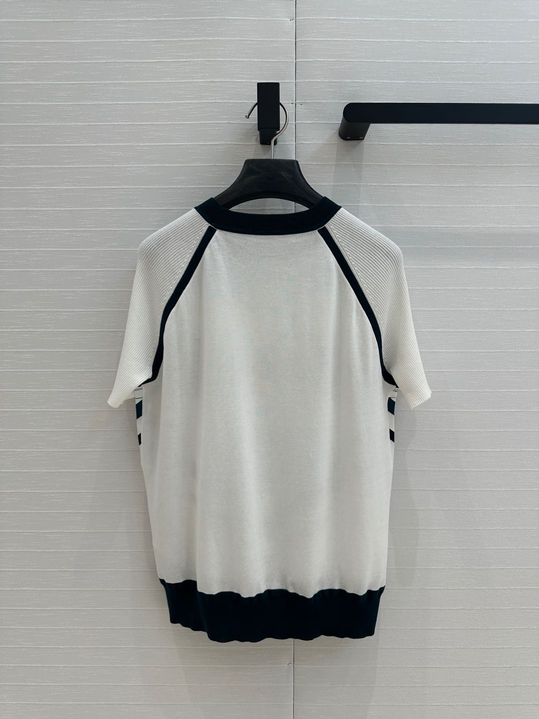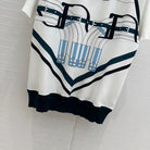 Hm 25 Print Patchwork Knit Top White Blue Tencel Wool