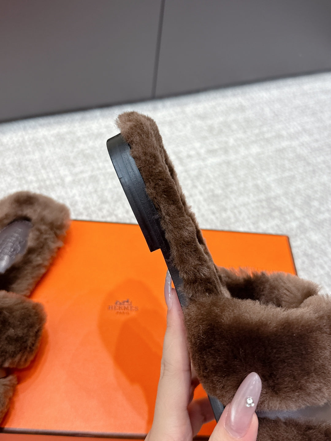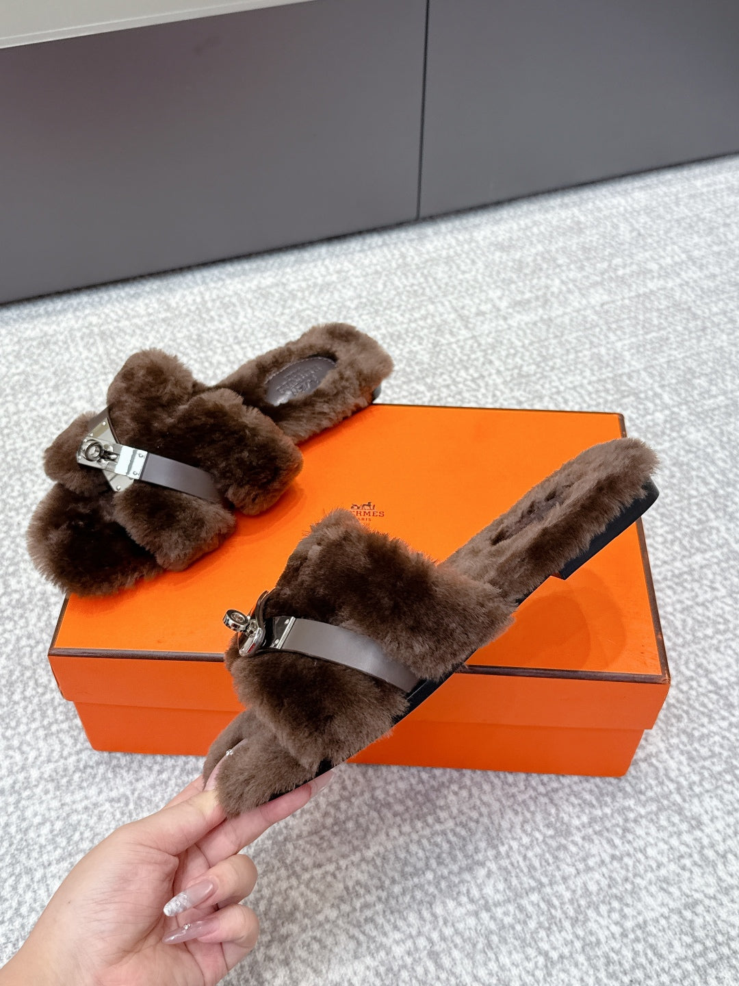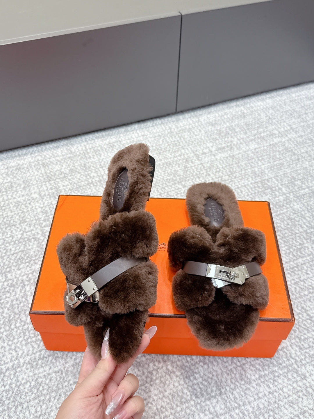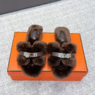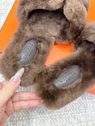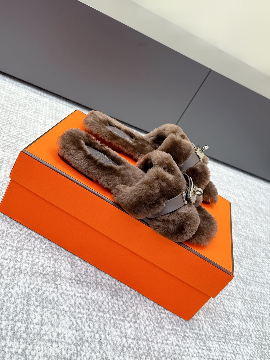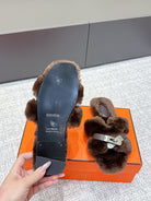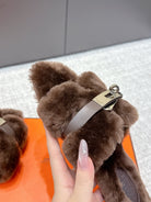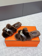 HM 25s H Shaped Slipper with Buckle Dark Brown Shearling 462194