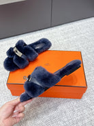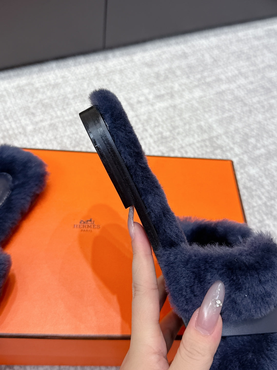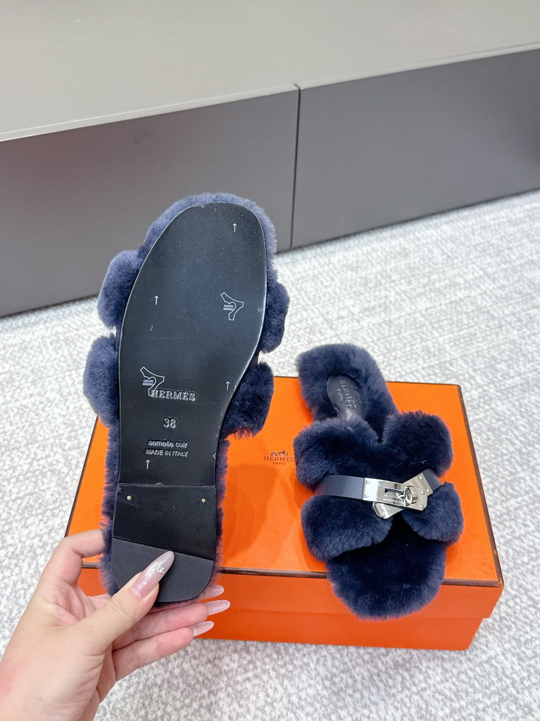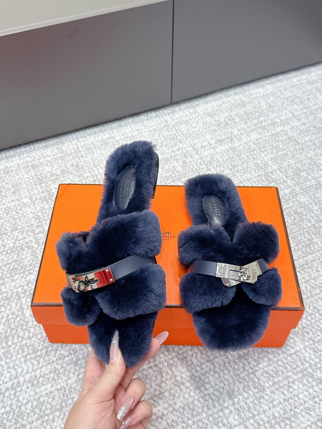 HM 25s H Shaped Slipper with Buckle Navy Blue Shearling 462192