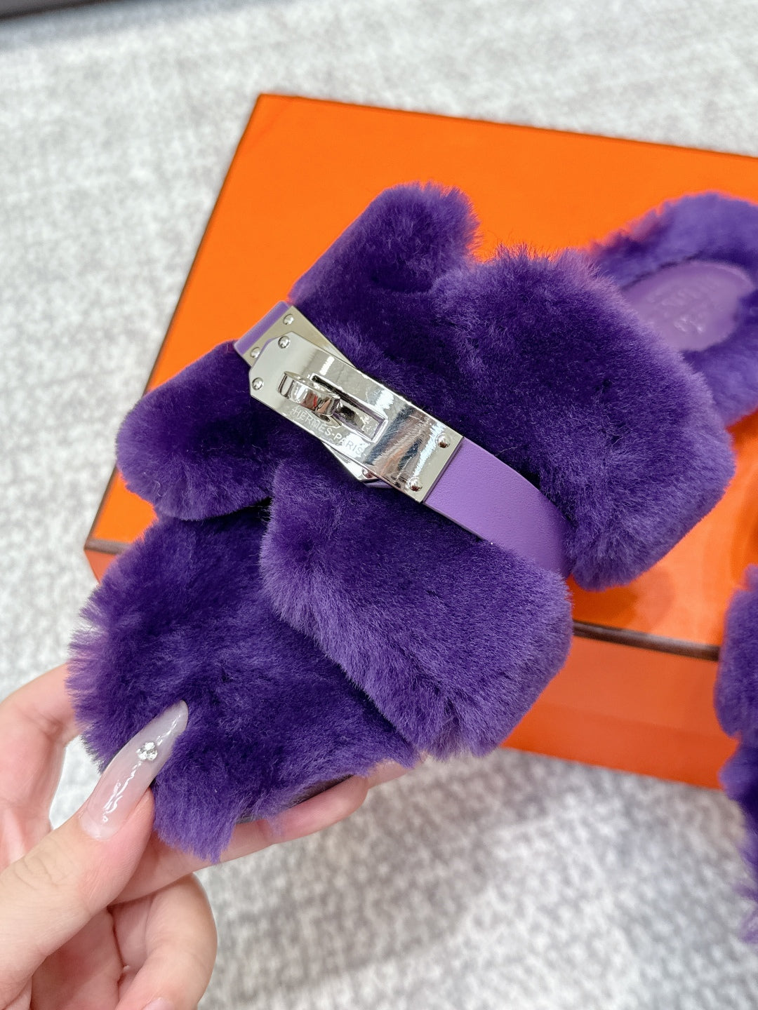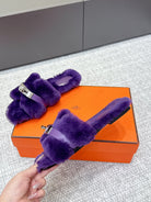 HM 25s H Shaped Slipper with Buckle Purple Shearling 462191