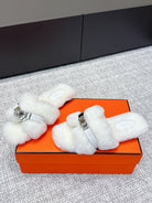 HM 25s H Shaped Slipper with Buckle White Shearling 462195