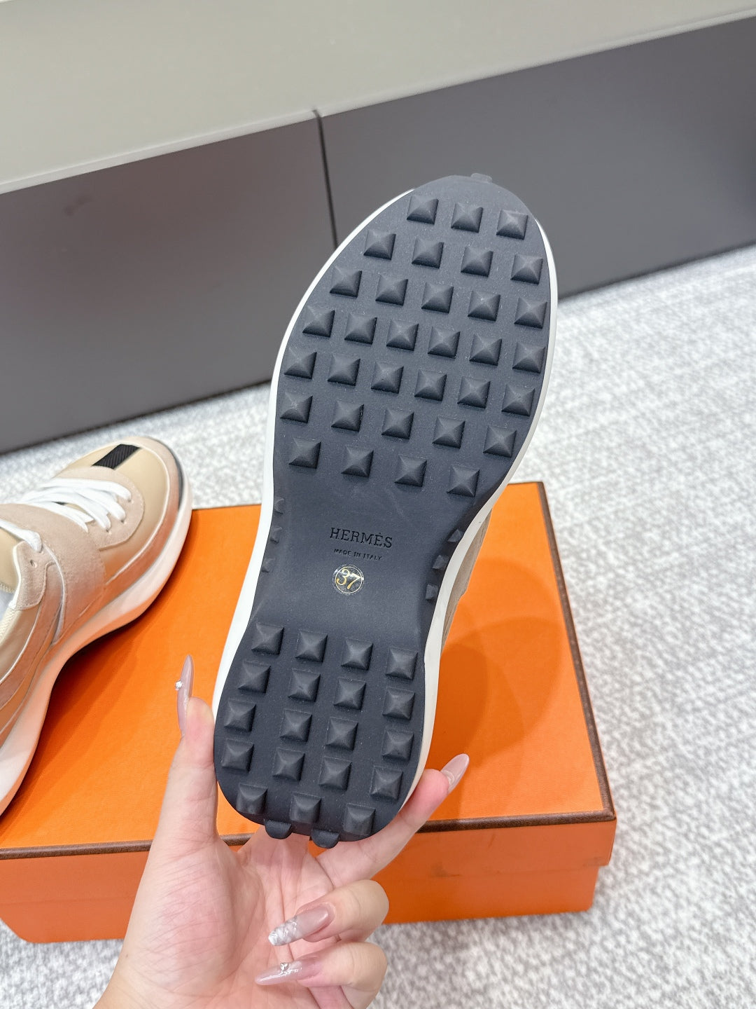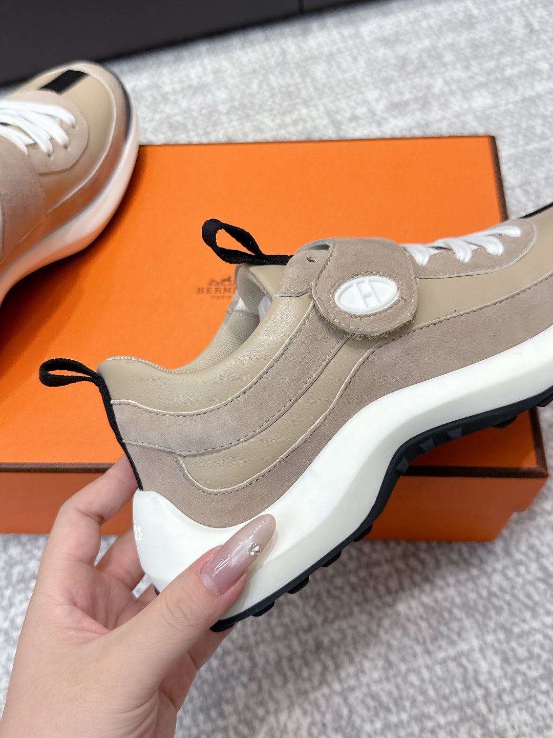 HM 25s Loop Sneaker Beige Galet Suede Lamskin 462190