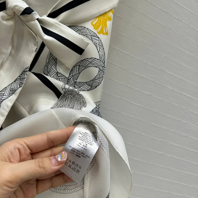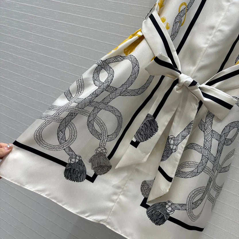 HM 25S Palefroi Remix Sleeveless Dress Graphic Print in White Silk