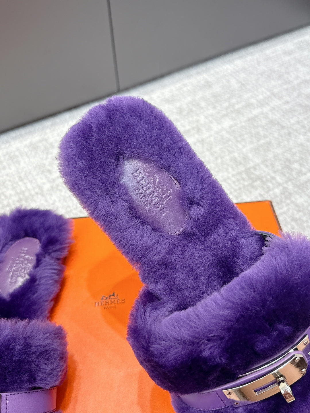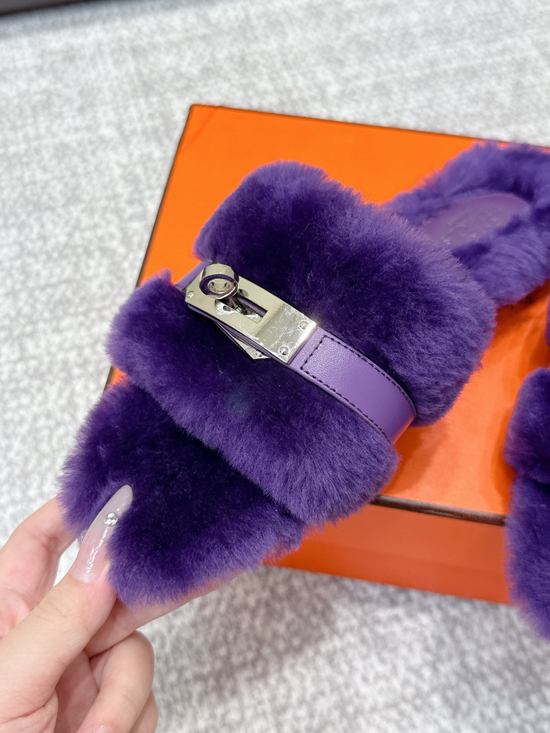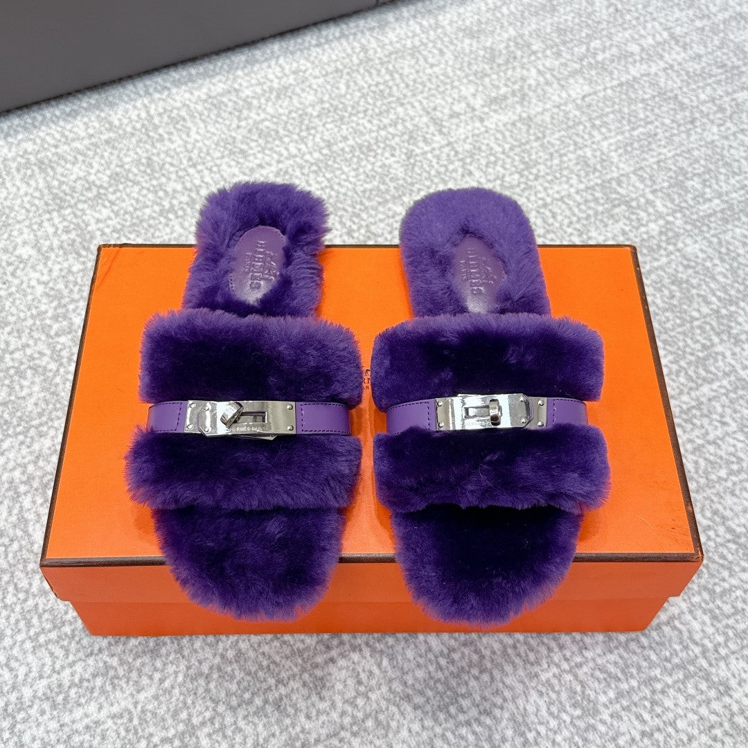 HM 25s Slipper with Buckle Purple Fur 462201