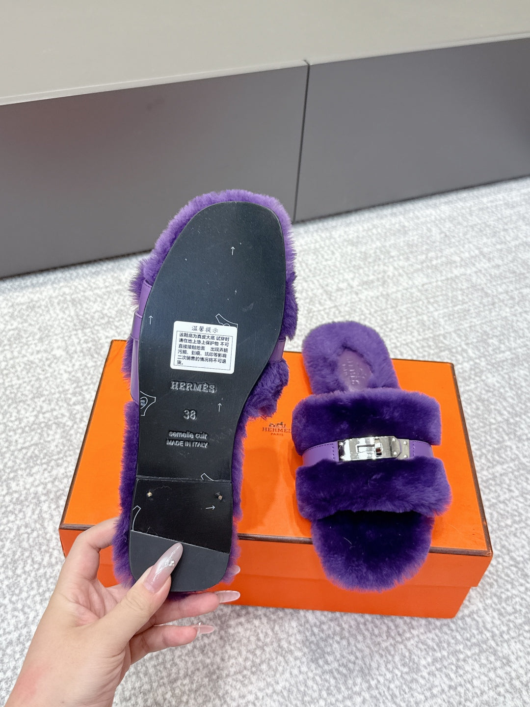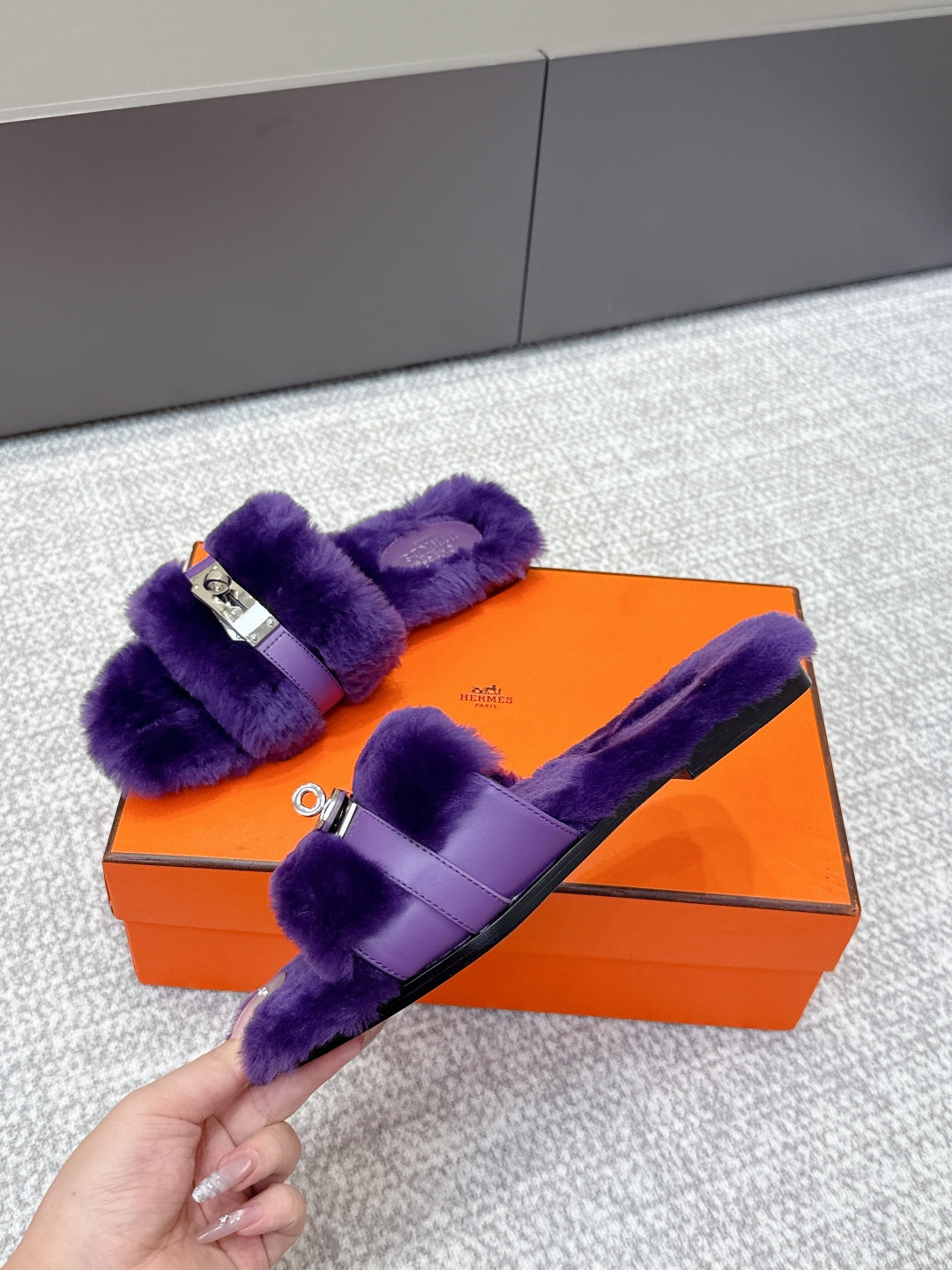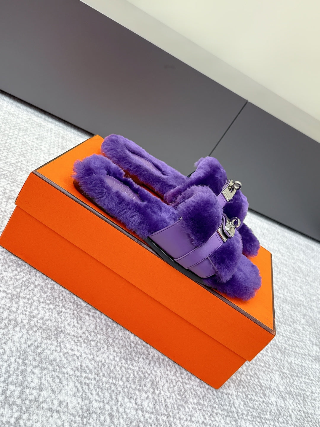 HM 25s Slipper with Buckle Purple Fur 462201