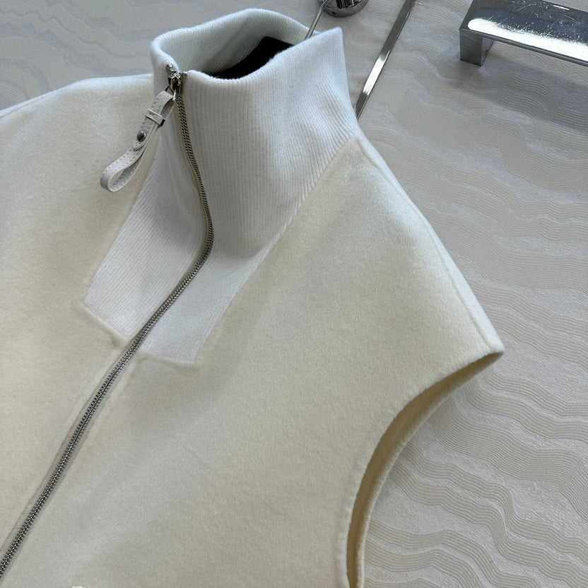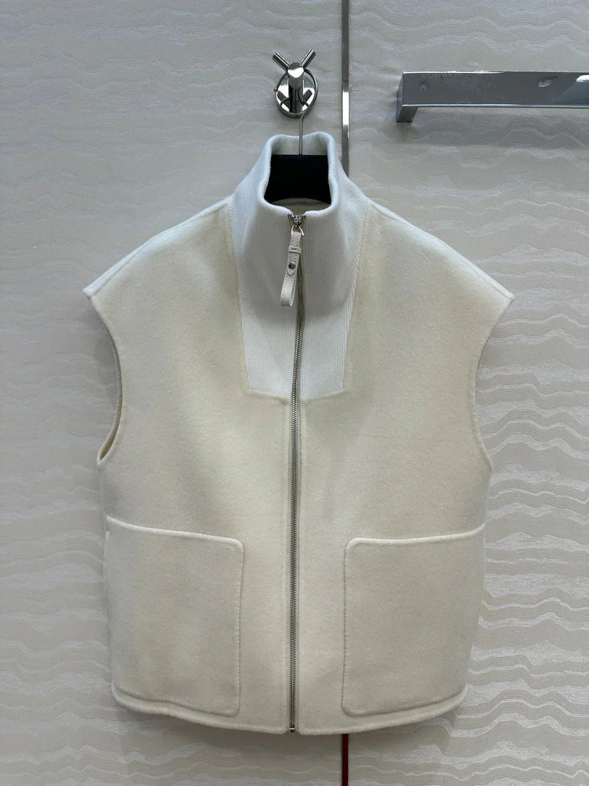 HM 25S Zipped Vest in White Wool and Cashmere