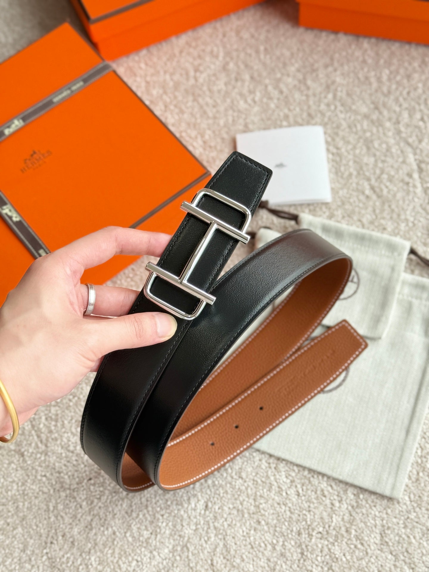 HM 38mm Royal Buckle Belt Black Brown Leather 188229