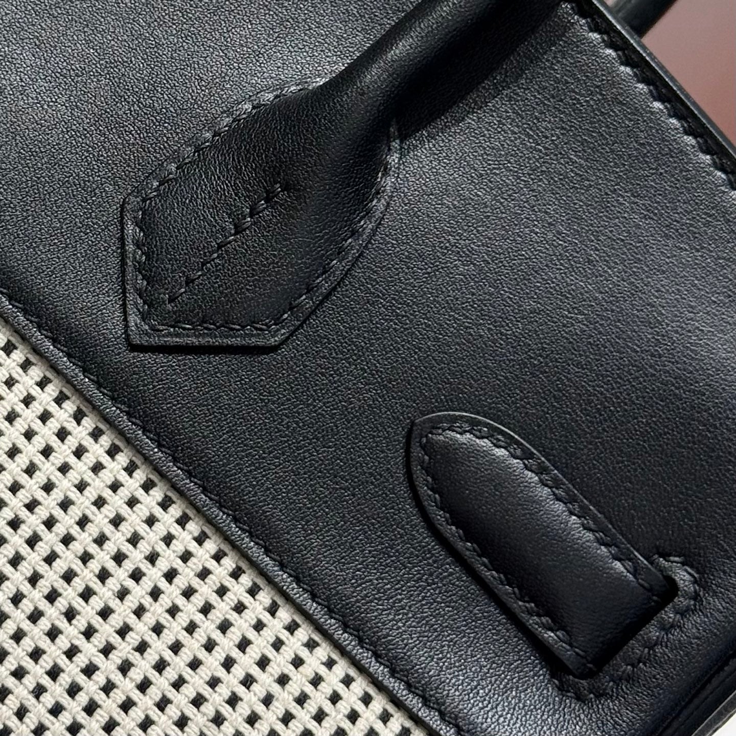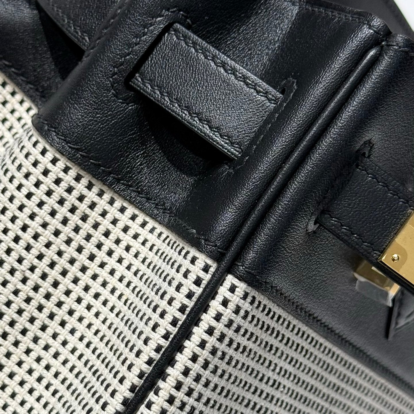 HM Birkin 30cm Black Swift Cowhide With Waffle Panda Black and White Canvas Fabric Ghw 249974