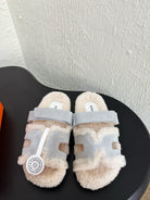 HM Chypre Sandal In Light Grey Blue Mix White Suede And Fleece Lining 961137