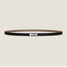 HM FOCUS BUCKLE & REVERSIBLE KHAKI BROWN AND BLACK LEATHER STRAP 13MM SILVER HARDWARE