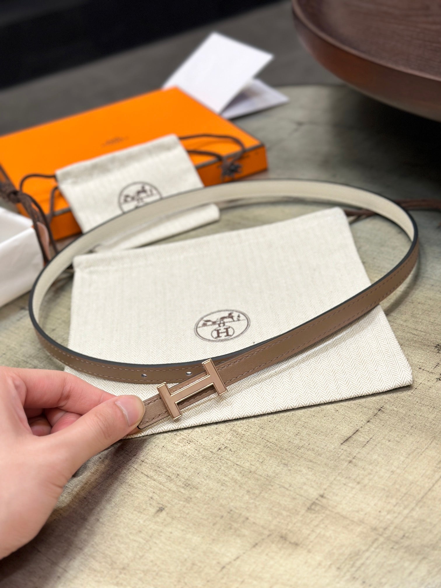HM FOCUS BUCKLE & REVERSIBLE PEANUT BROWN AND WHITE LEATHER STRAP 13MM COPPER HARDWARE