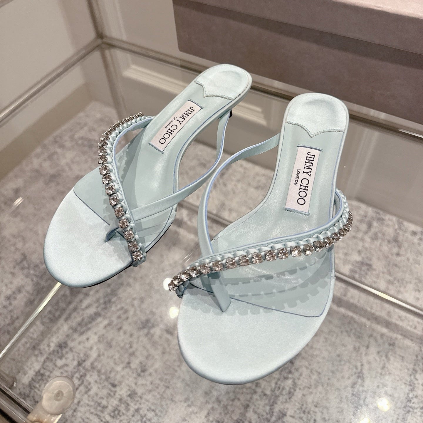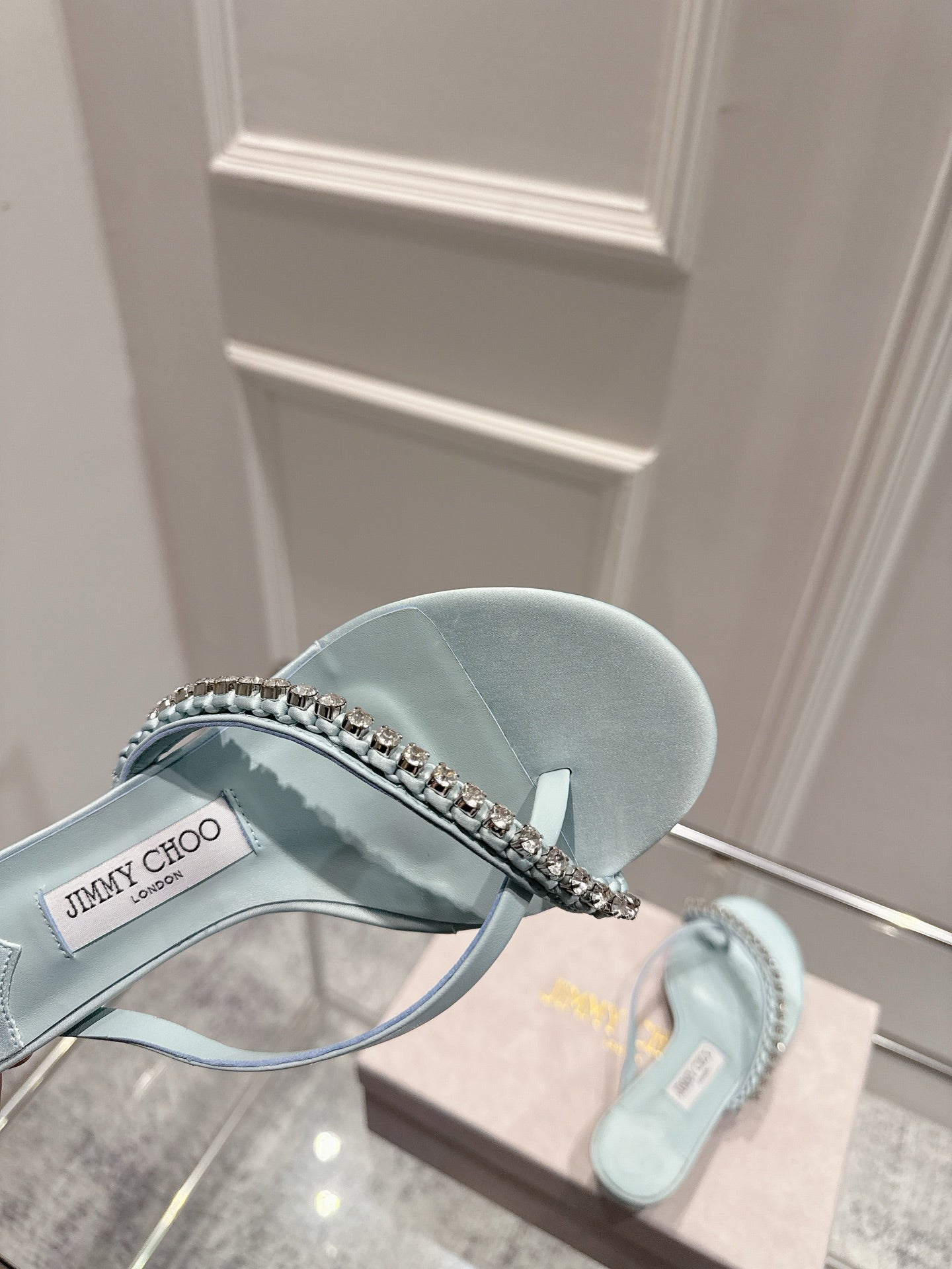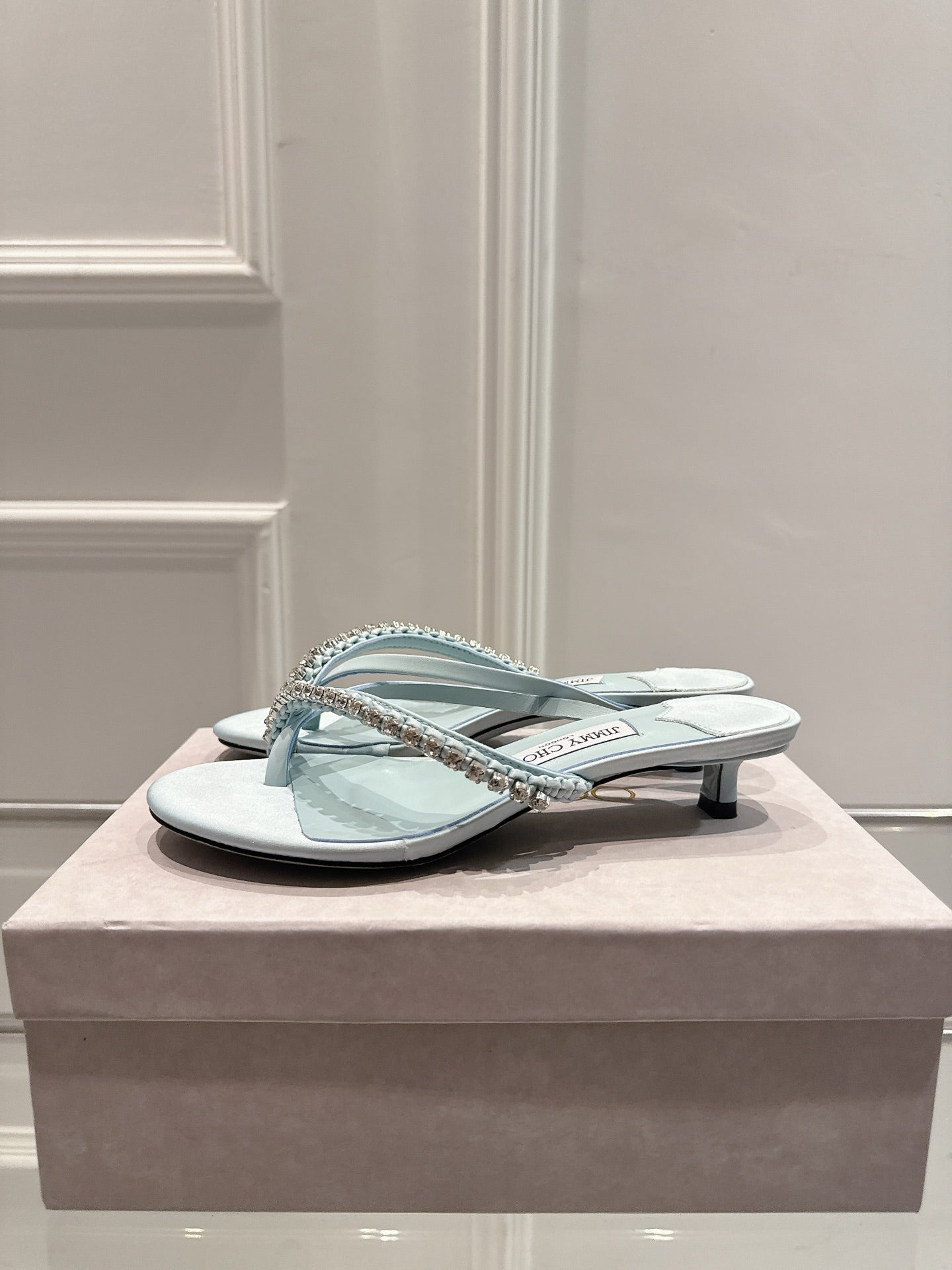 Jimmy Crystal Dila Mules 35mm Light Blue Sheepskin 422439
