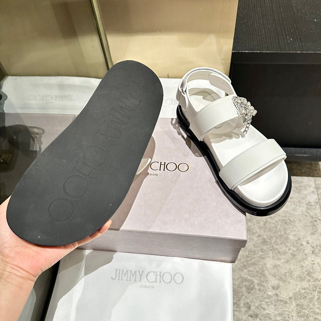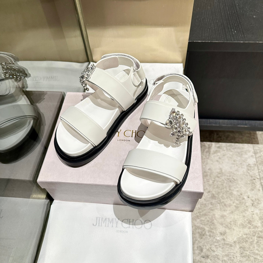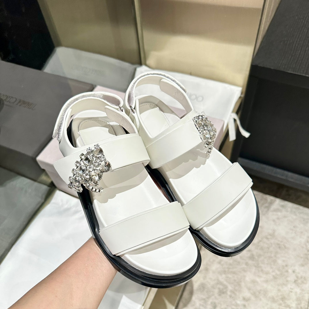 Jimmy Rhinestone Verity Sandals White Leather 326425
