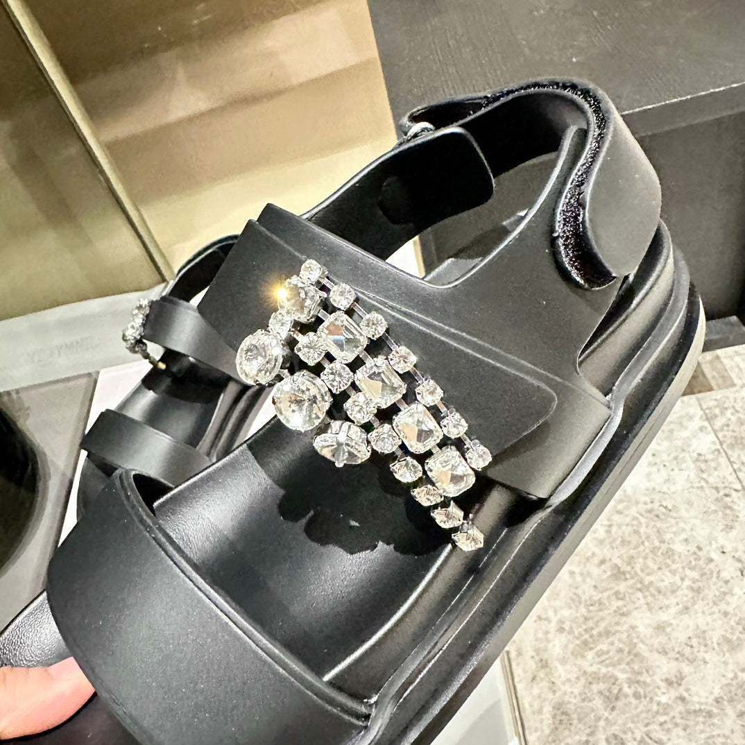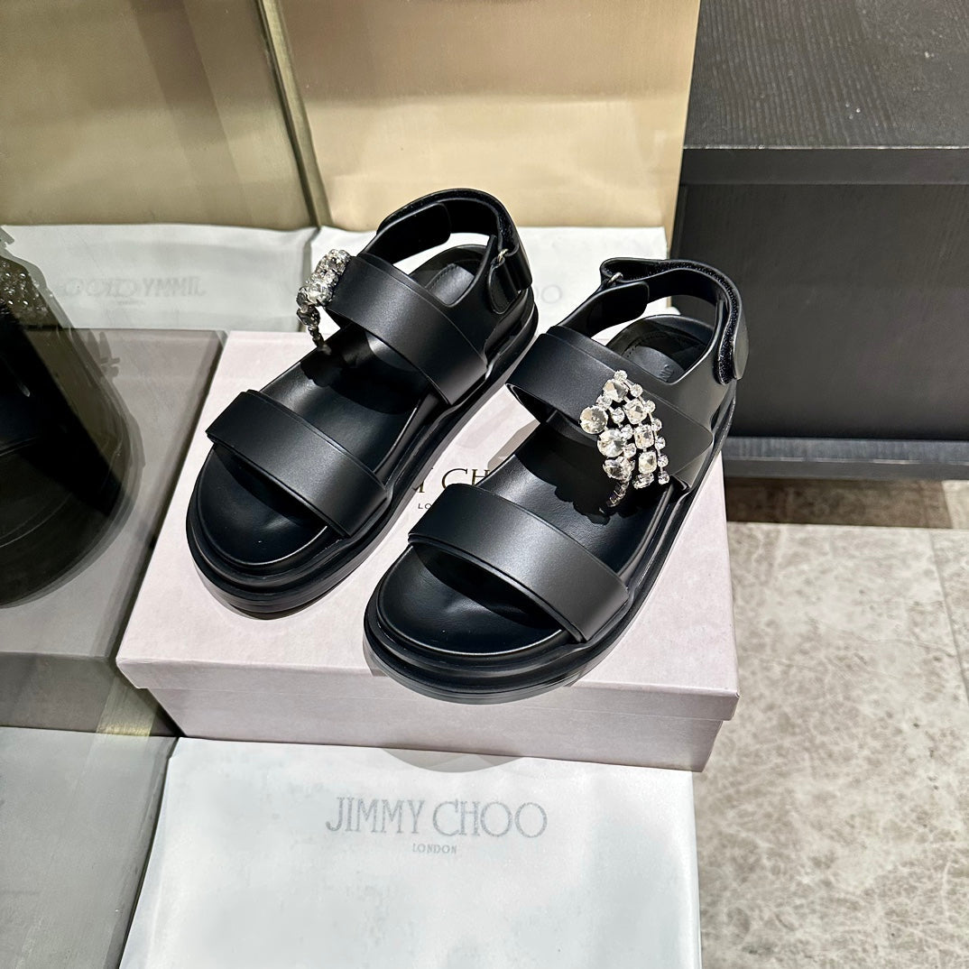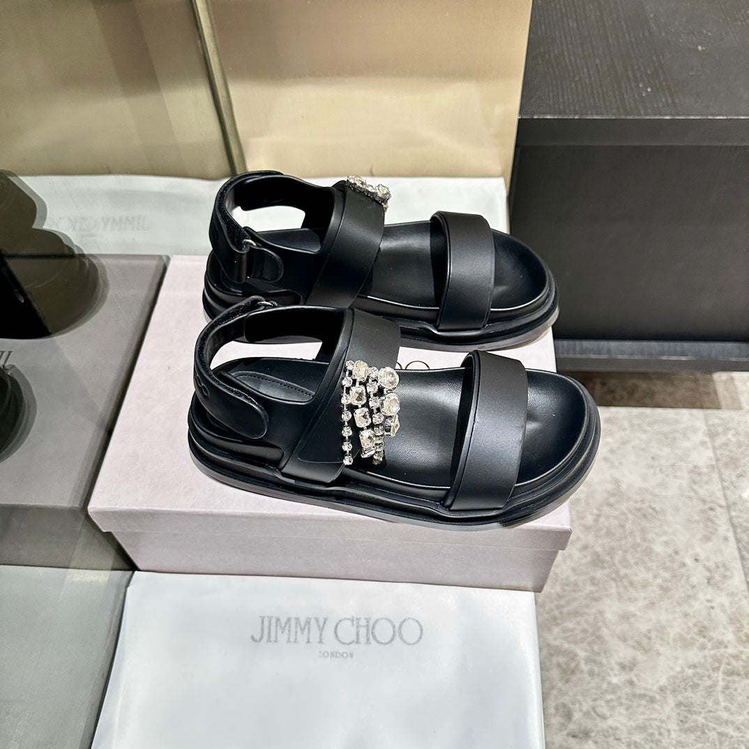 Jimmy Rhinestone Verity Sandals Black Leather 326426