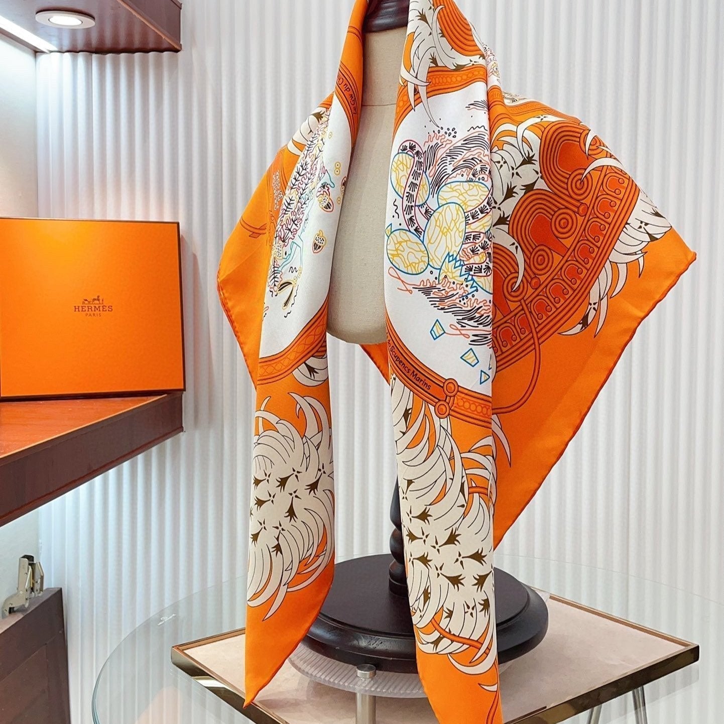 Legende Brodee Scarf 90 CM In Orange Colorful Silk Twill 300423
