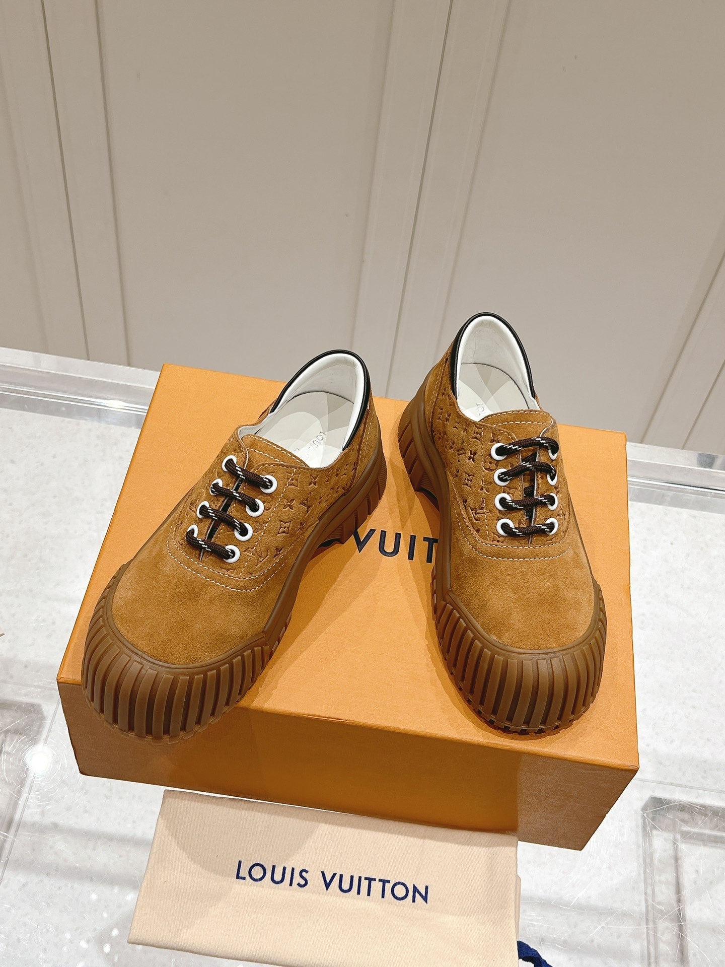 LV Ruby Flat Derby Sneaker Brown Embossed Suede 480789