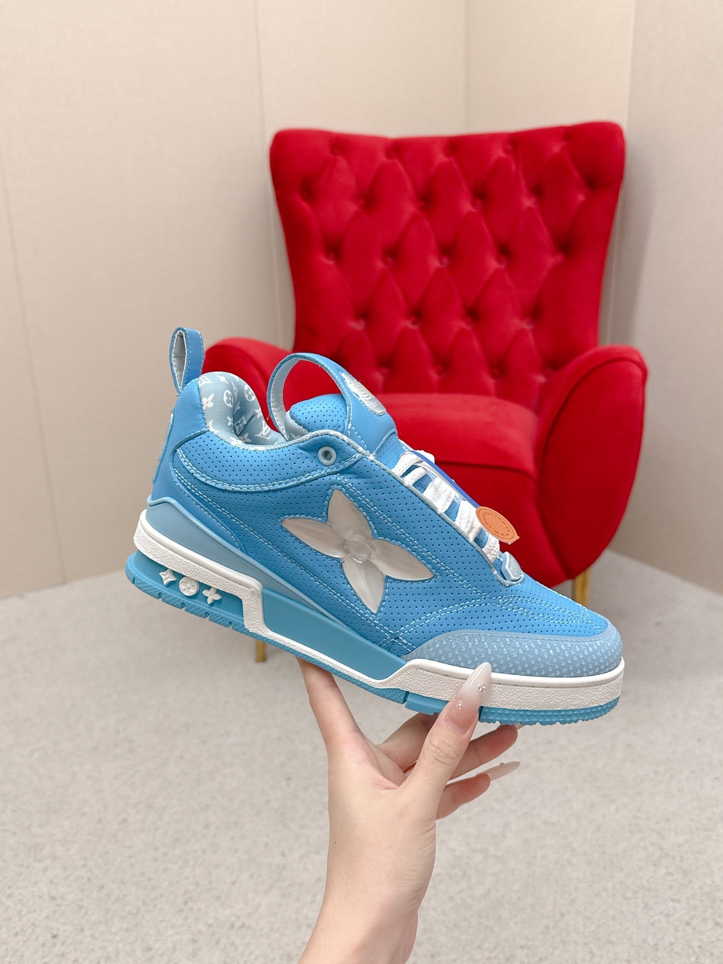 LV Skate Sneakers Blue Metallic and Perforated Calf Leather 528546