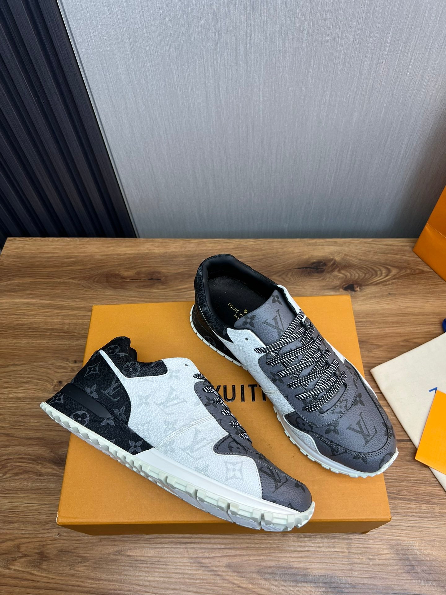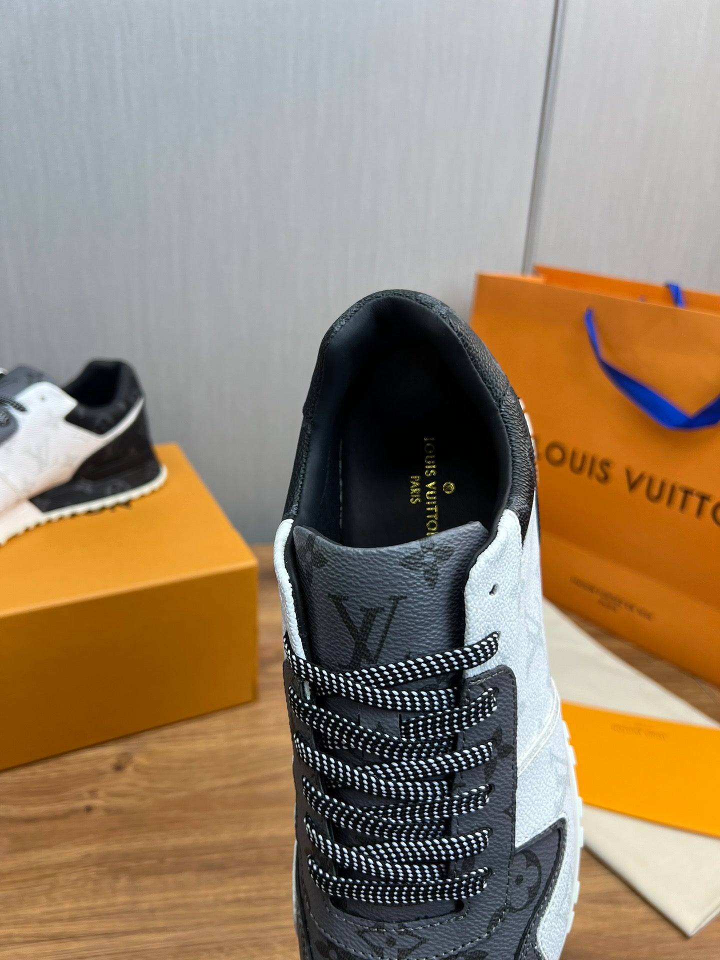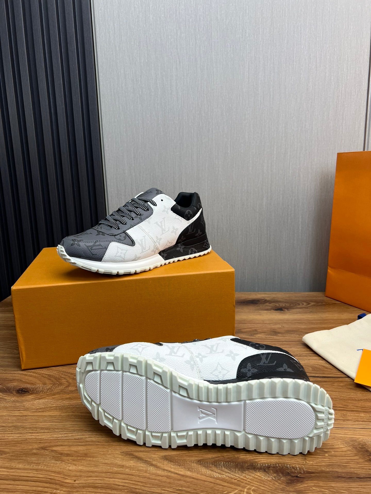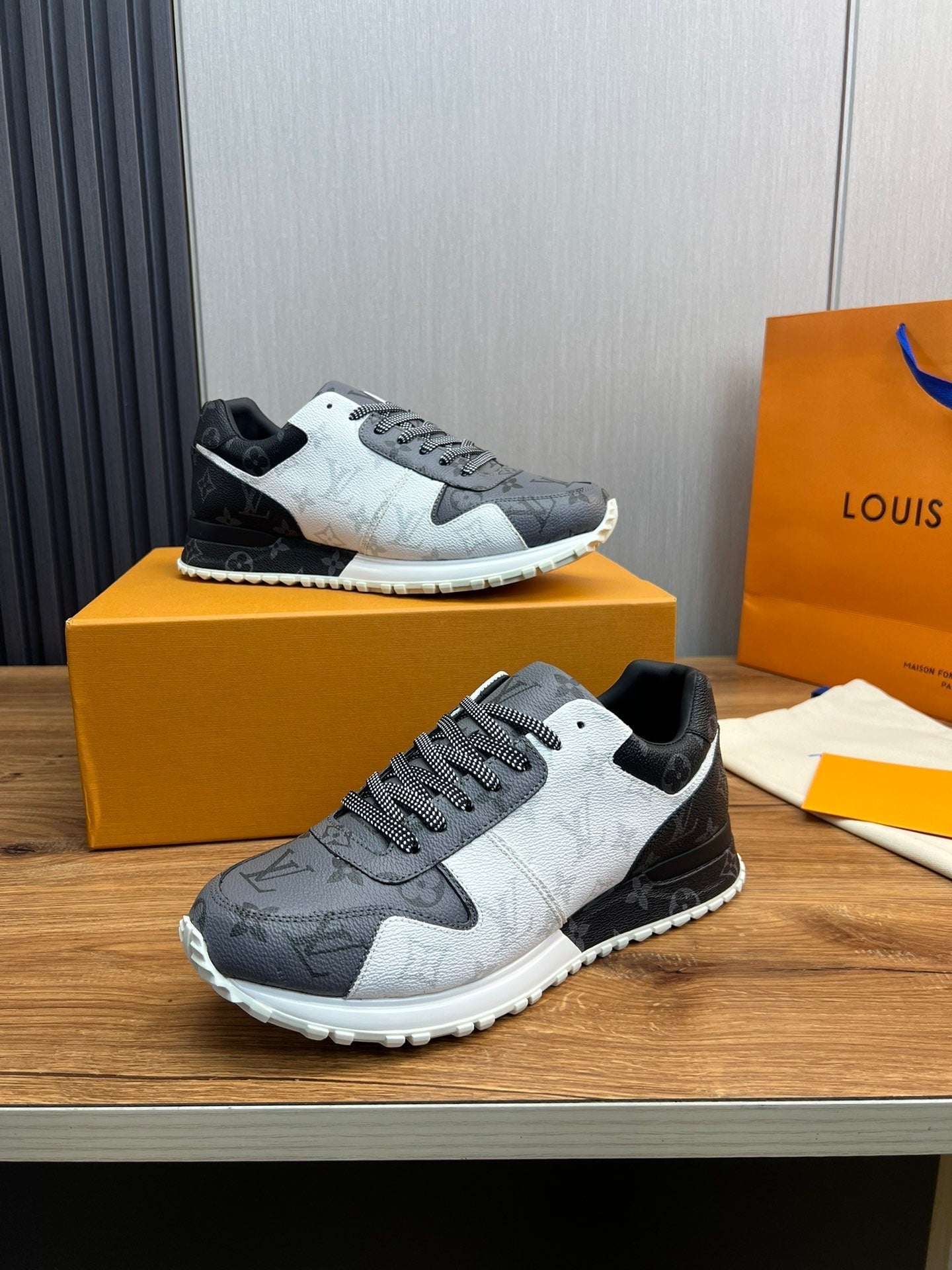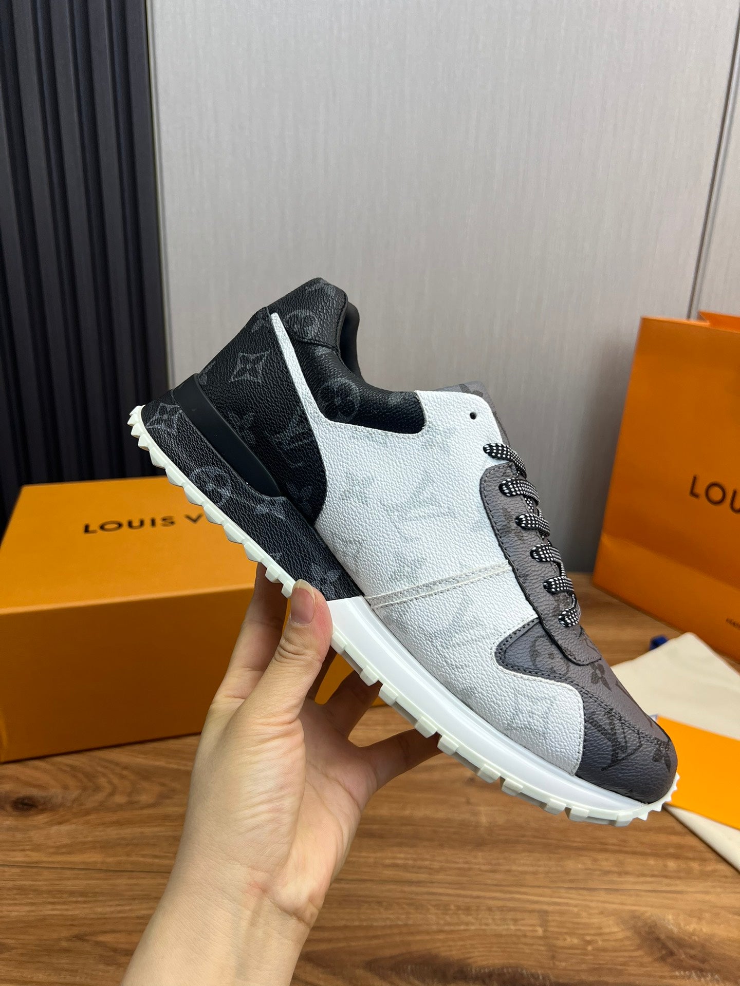 LV SNEAKER BLACK MIX WHITE AND GREY MONOGRAM CALFSKIN