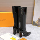 LVx Silhouette Logo Stud Long Boot 95mm Black Patent Leather 425692