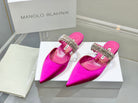 Manolo Flats Mules Diamond Buckle Dark Pink Silk Satin 327481