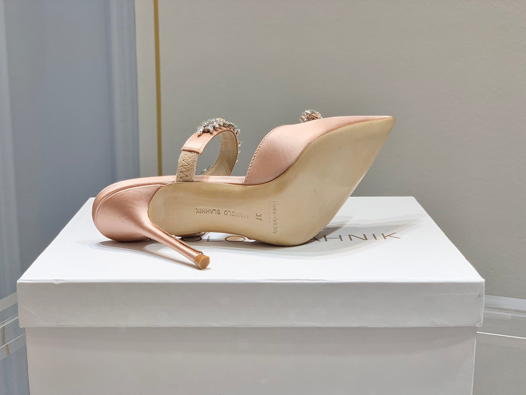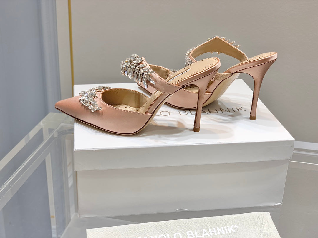 Manolo Mules Crystal Pink Silk Satin 219386