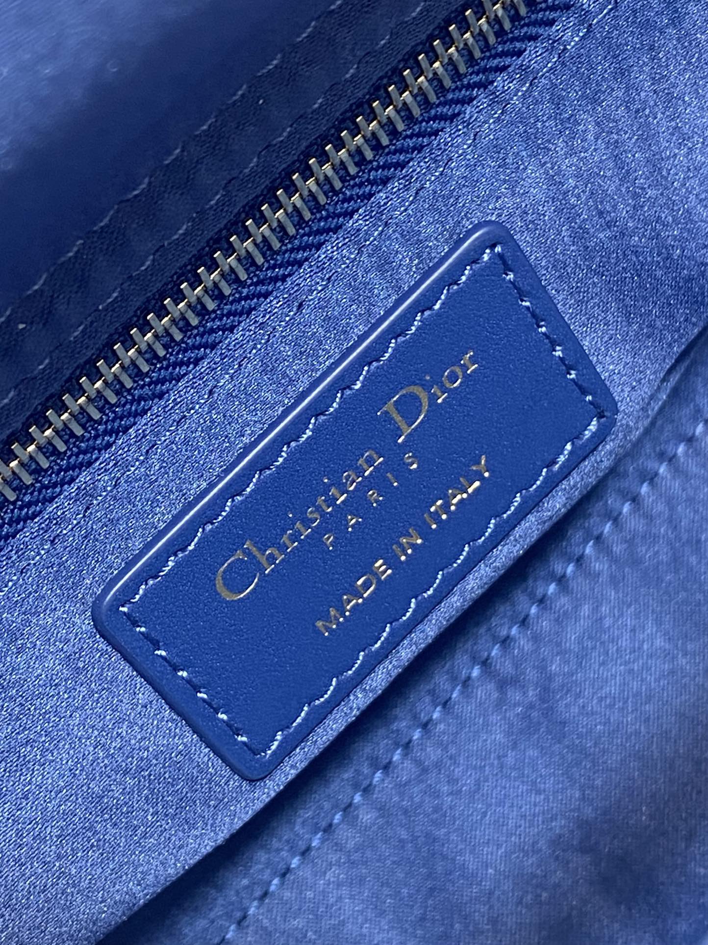 MINI 20 LADY BAG IN COBALT BLUE SATIN WITH COLORFUL EMBROIDERED BEADWORK