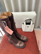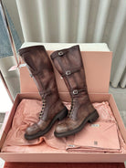 MiuMiu 25 motorcycle boots brown cowhide 521967