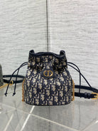 MONTAIGNE MINI 18 BUCKET BAG WITH DRAWSTRING IN BLUE OBLIQUE JACQUARD