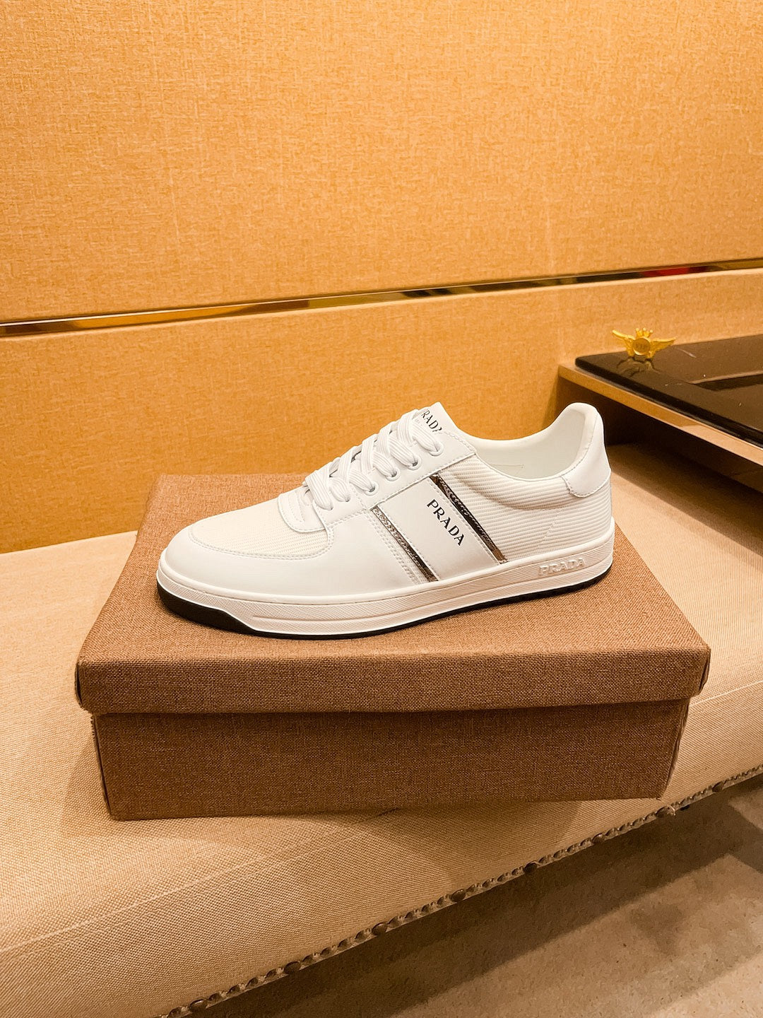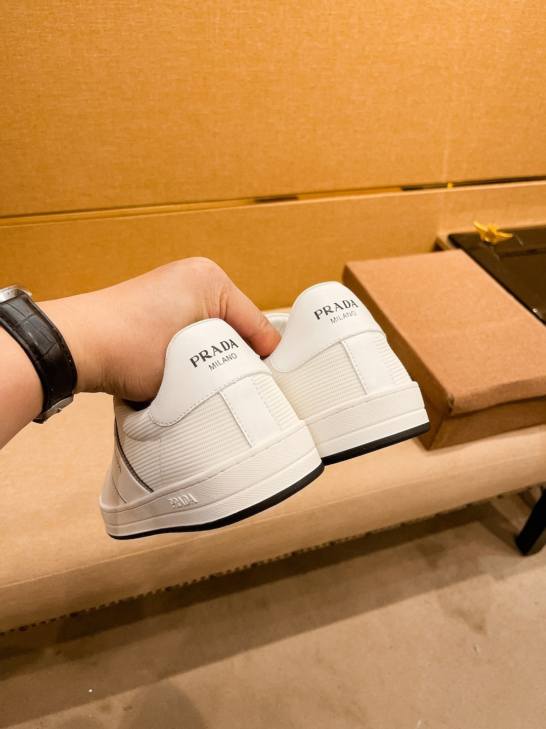 PRA SNEAKER IN WHITE CALFSKIN AND MESH BREATHABLE FABRIC