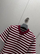 Prada 25 Yarn Striped Round Neck Knit Top White mix Red Cotton Poliamide 217770