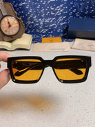 RECTANGLE SUNGLASSES 575848 IN BLACK ACETATE ORANGE METAL YELLOW LENS