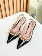 Rockstud Bow Slingback Black and Rose Cannelle Calfskin With Matching Studs