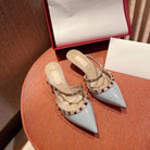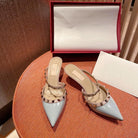 Rockstud Slingback Ballerina Flats Mist Blue Leather Cross Straps