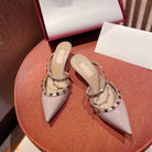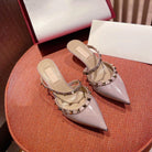 Rockstud Slingback Ballerina Flats Rose Cannelle Leather Cross Straps