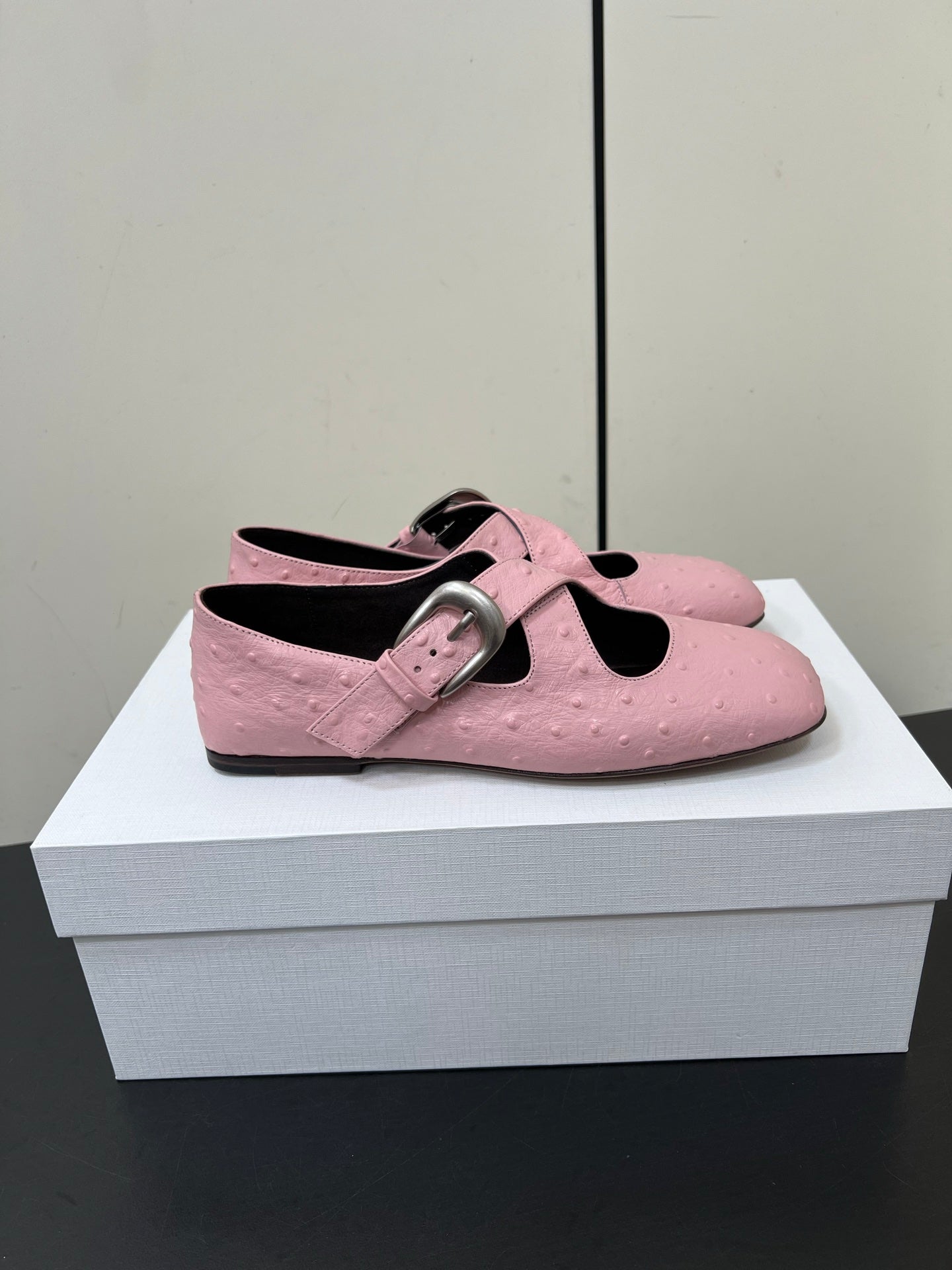 The Row Gaia Criss Mary Jane Pink Ostrich Leather 340001