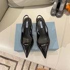TRIANGLE LOGO SLINGBACK PUMPS IN BLACK GLOSSY CALFSKIN