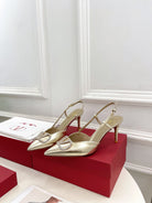 Vlogo Signature Diamond Slingback Pump Gold Calfskin