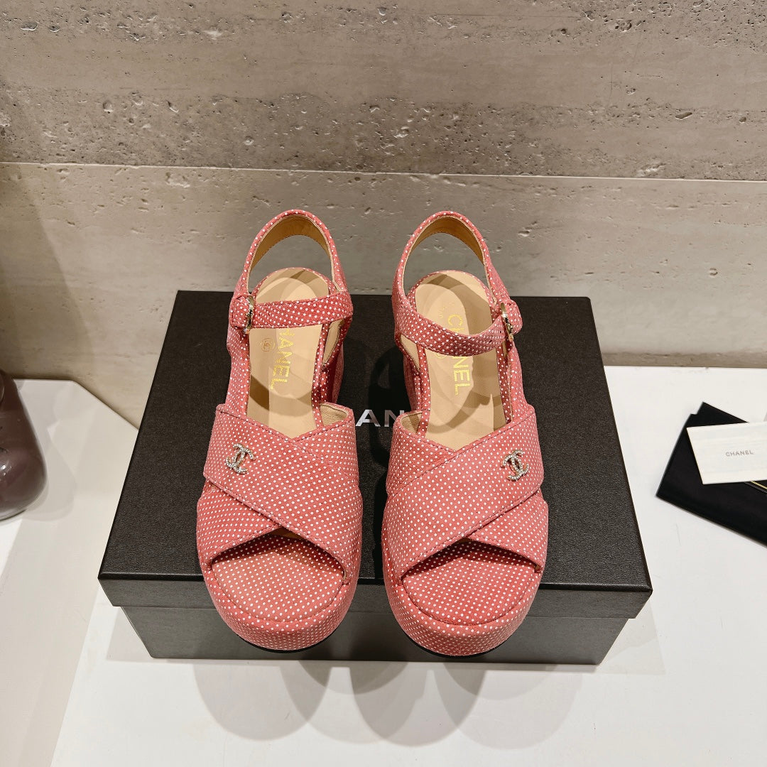 Wedge Open-Toe High Heel Sandals Light Pink Sheepskin